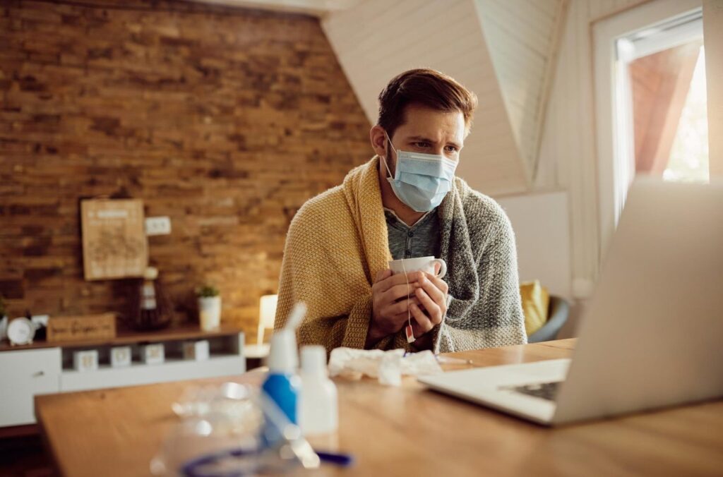 Erkrankte Personen sollten in gemeinsamen Wohnräumen eine FFP2-Maske tragen und sich, wenn möglich, isolieren. Es ist wichtig, dass Menschen, die alleine leben, Freunde, Familie oder Nachbarn über ihre Situation informieren. So können diese im Notfall Unterstützung leisten, zum Beispiel bei der Beschaffung von Lebensmitteln oder Medikamenten. Ein regelmäßiger Kontakt zwischen Arzt und Patient ist ebenfalls erforderlich, um den Gesundheitszustand zu überwachen.